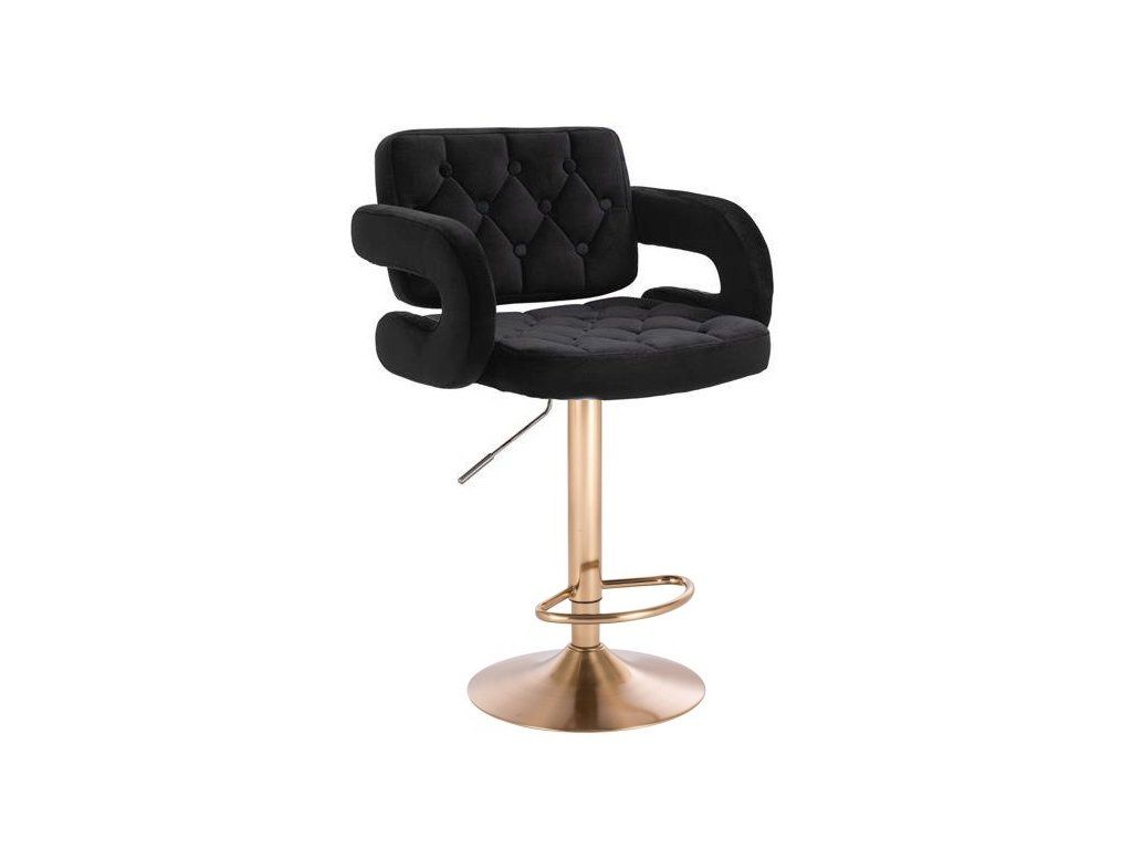 Barhocker ADRIA VELOURS mit goldenem Tellerfuß - Schwarz