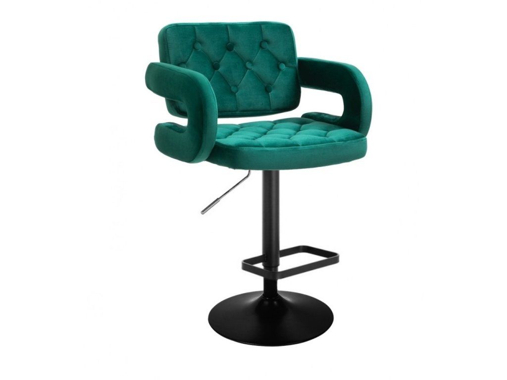 Barhocker ADRIA VELOURS mit schwarzem Tellerfuß - Grün