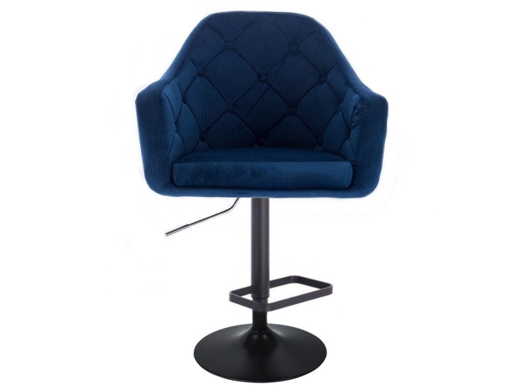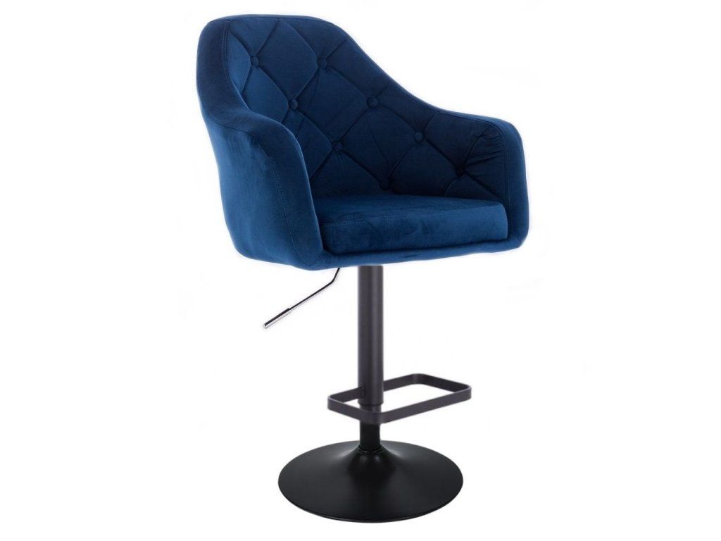 Barhocker ANDORA VELOURS mit schwarzem Tellerfuß – Blau