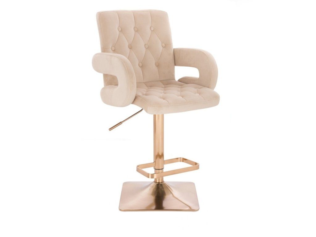 Barhocker BOSTON VELOURS mit goldenem Vierkantgestell – Creme