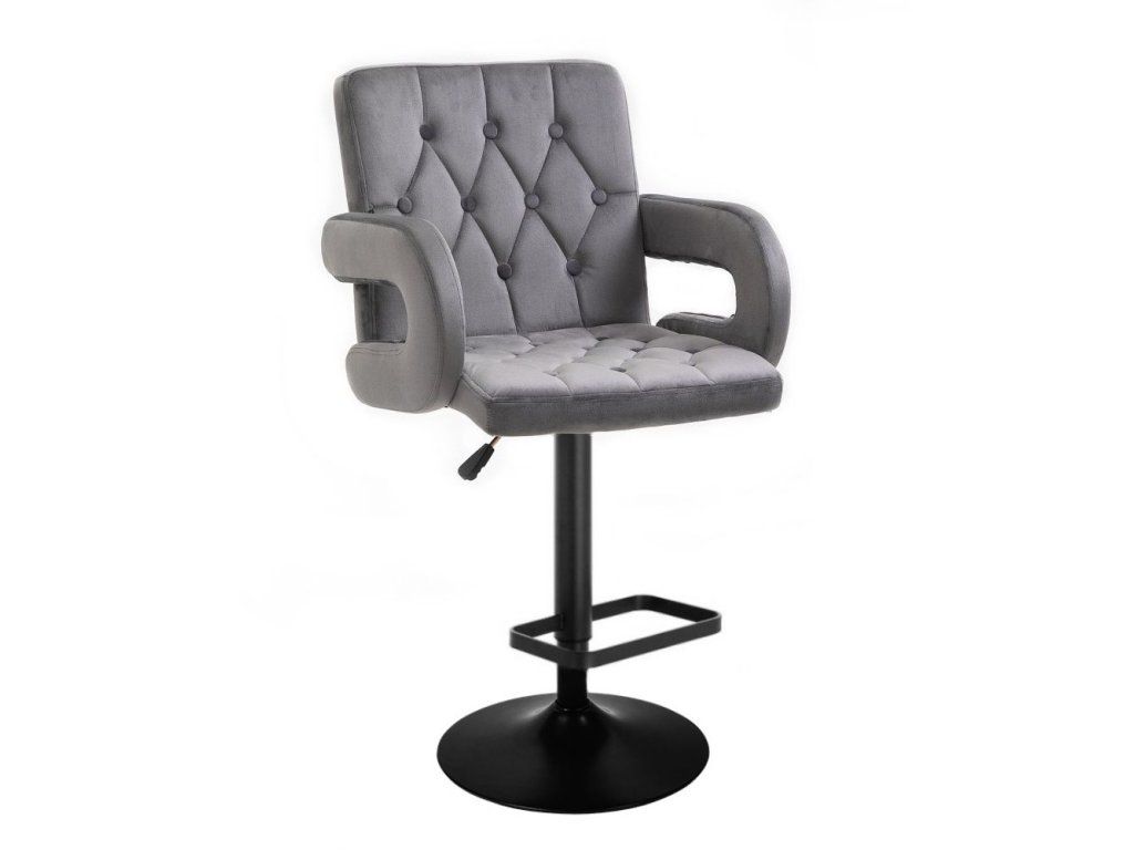 Barhocker BOSTON VELOURS mit schwarzem Tellerfuß – Grau