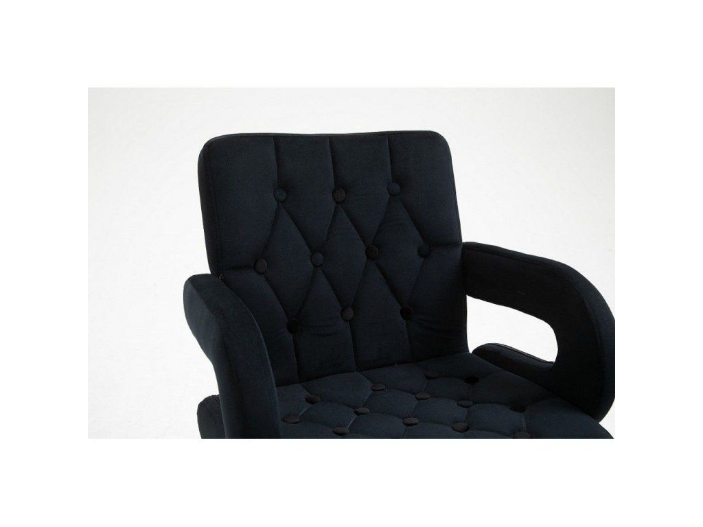 Das luxuriöse Design wird durch eine tiefe und komfortable Sitzfläche unterstrichen, die mit angenehm weichem, gestepptem Velours bezogen ist. Die Polsterung ist mit stoffbezogenen Knöpfen verziert und verleiht dem Stuhl eine elegante Optik.