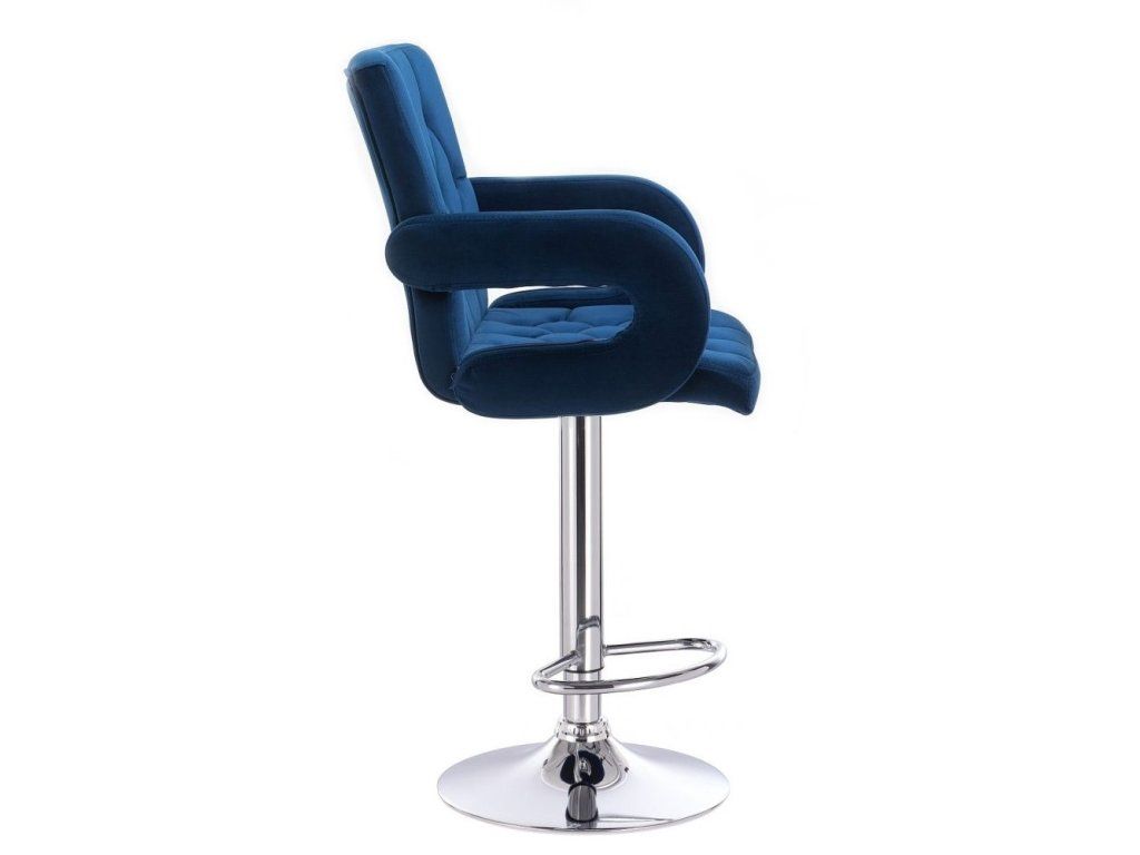 Barhocker BOSTON VELOURS mit silbernem Tellerfuß – Blau