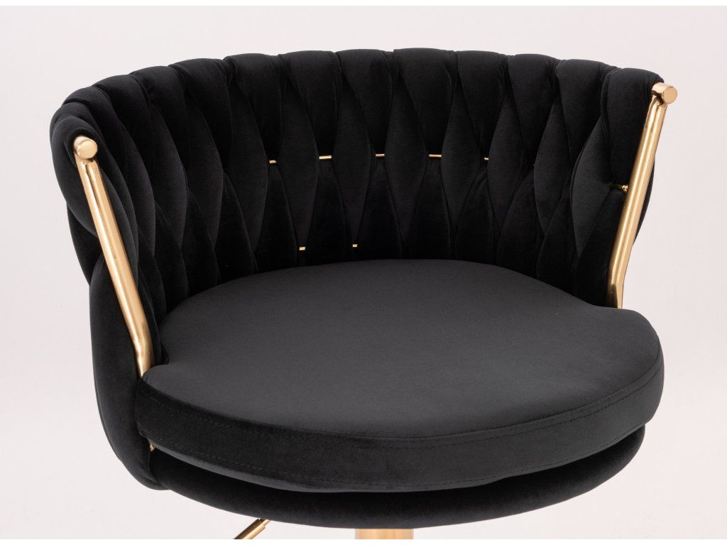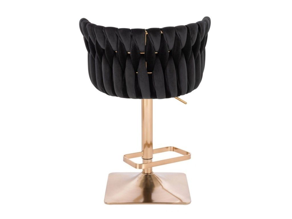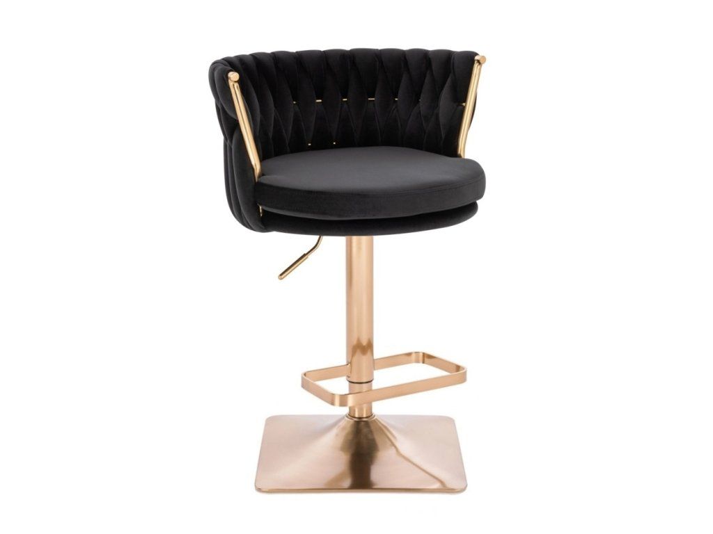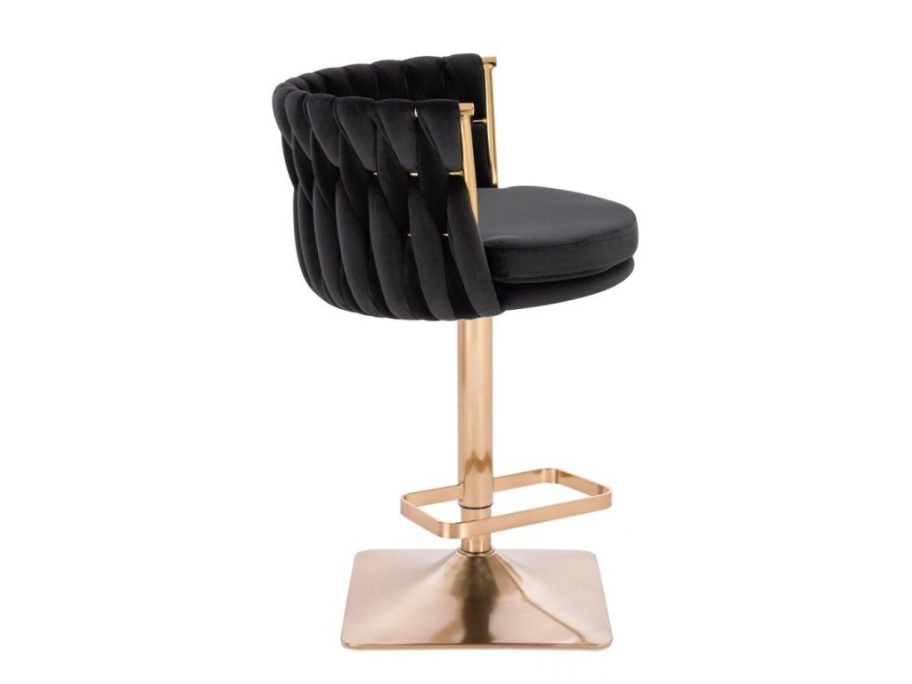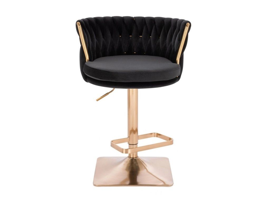 Barhocker LYON VELUR mit goldenem Vierkantgestell – Schwarz