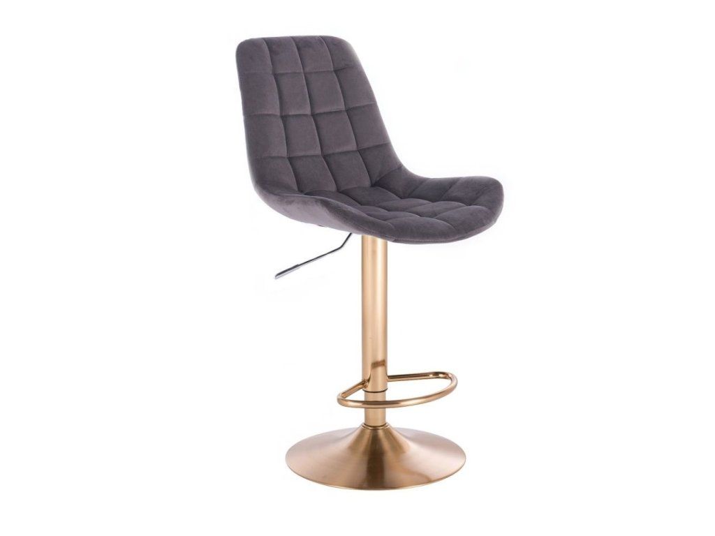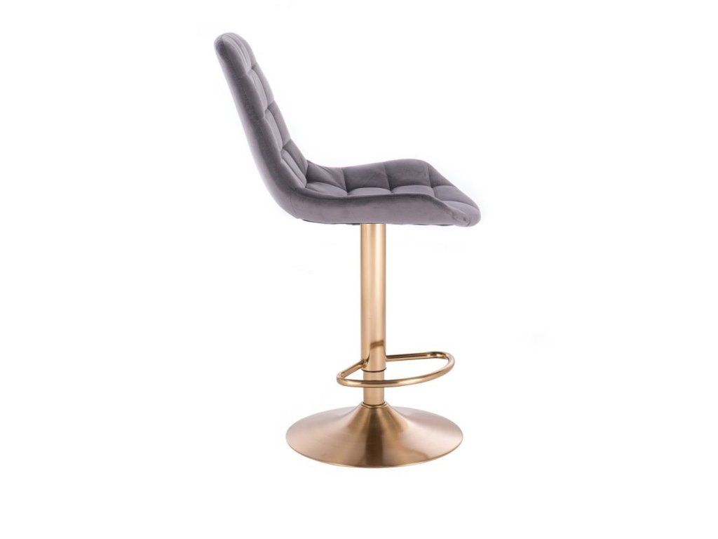 Barhocker PARIS VELOURS mit goldenem Tellerfuß – Grau