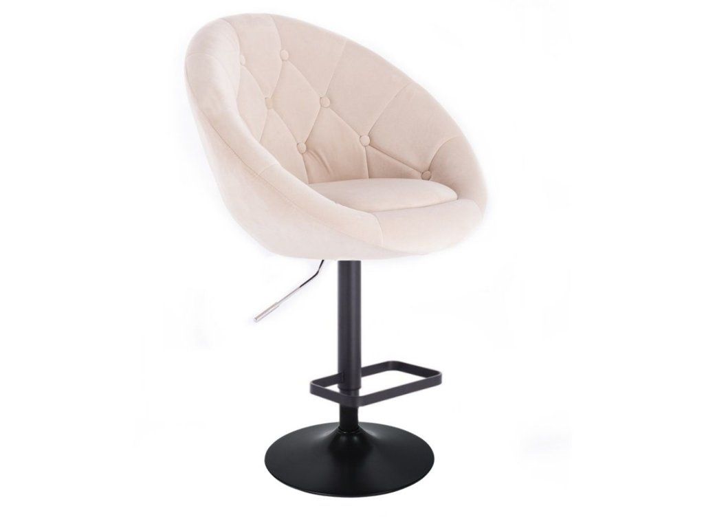 Barhocker VERA VELOURS mit schwarzem Tellerfuß – Creme