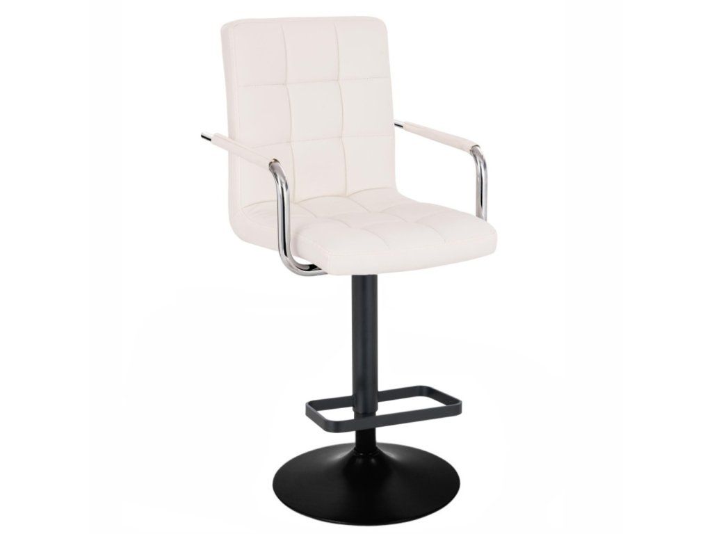 Sitzfläche und Rückenlehne sind gepolstert und mit gesteppter Kunstlederpolsterung bezogen, die sich leicht reinigen und pflegen lässt. Für zusätzlichen Komfort ist der Hocker mit verchromten Metallarmlehnen ausgestattet.