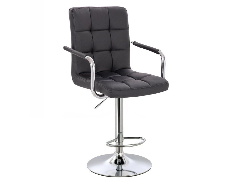 Sitzfläche und Rückenlehne sind gepolstert und mit gesteppter Kunstlederpolsterung bezogen, die sich leicht reinigen und pflegen lässt. Für zusätzlichen Komfort sorgen die verchromten Metallarmlehnen.