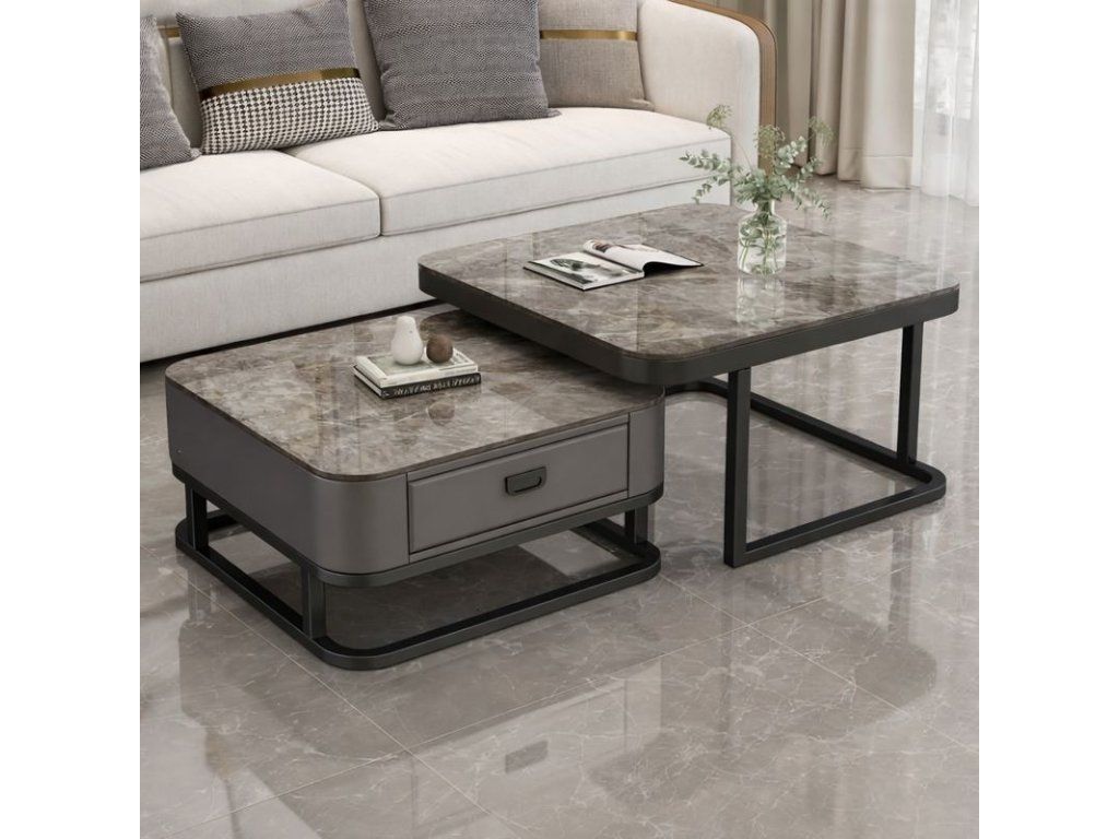 Couchtisch ARAGON 70 × 70 / 60 × 60 cm – Grau / Grauer Marmor (2er-Set)