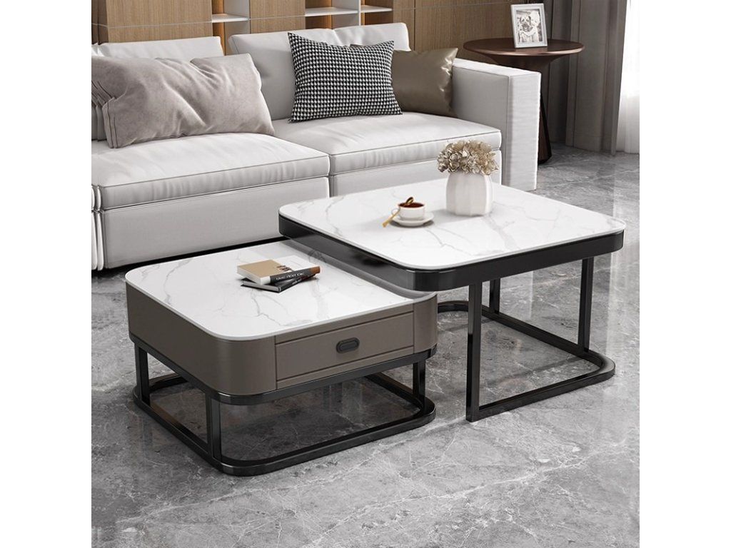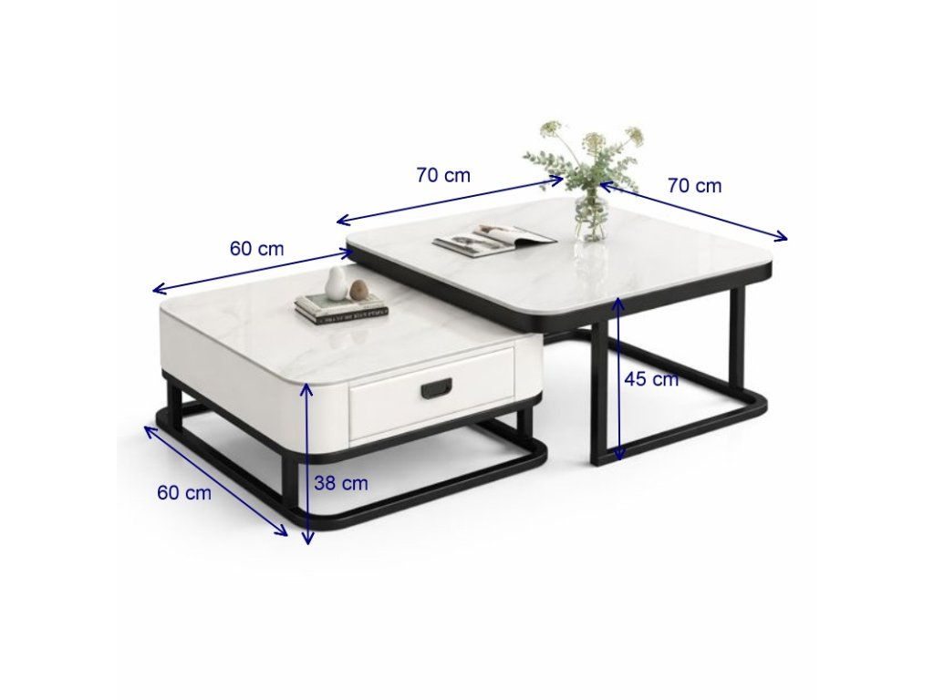 Der kleinere Tisch ist zusätzlich mit einer praktischen Schublade ausgestattet, die Stauraum für Kleinigkeiten, Fernbedienungen, Zeitschriften oder andere Gegenstände bietet und hilft, den Wohnbereich ordentlich zu halten.