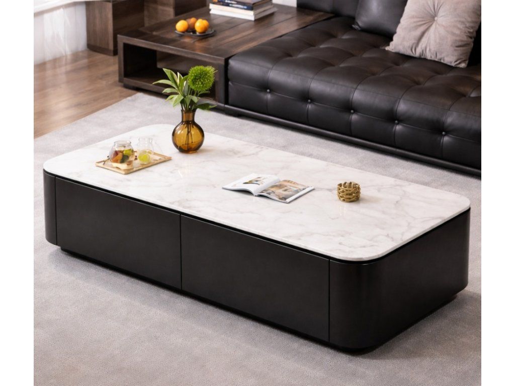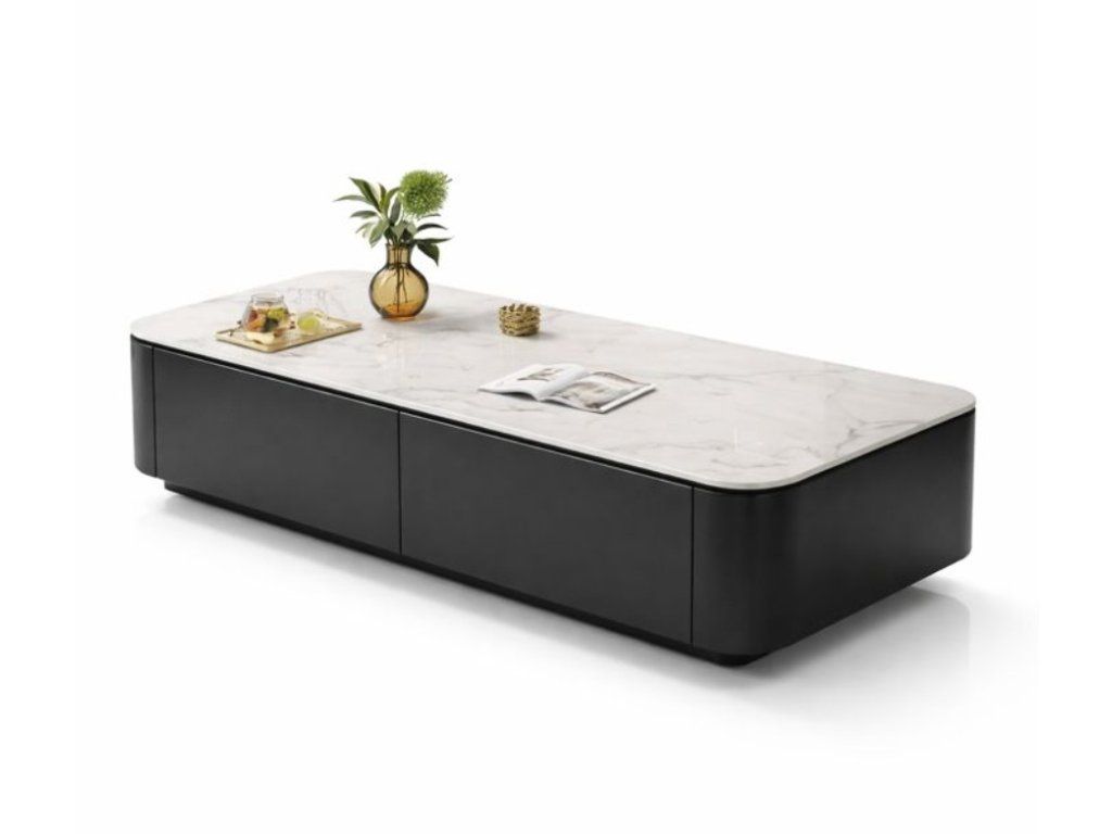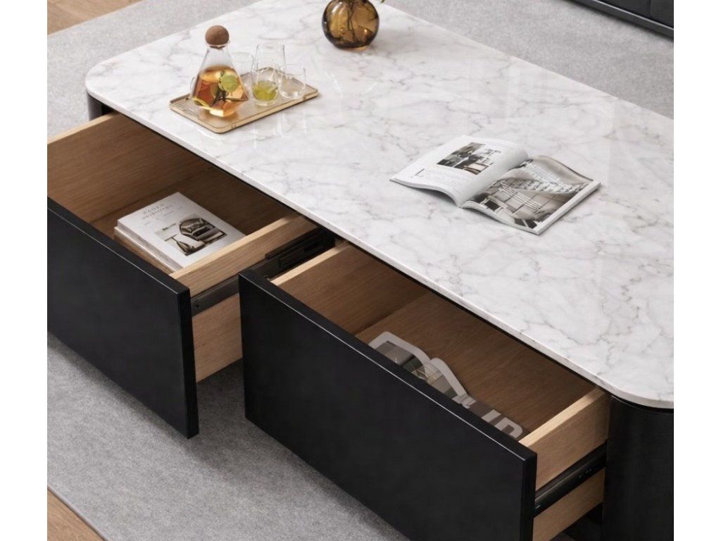 Couchtisch ASTON 120 × 60 × 36 cm – Schwarz mit weißer Tischplatte