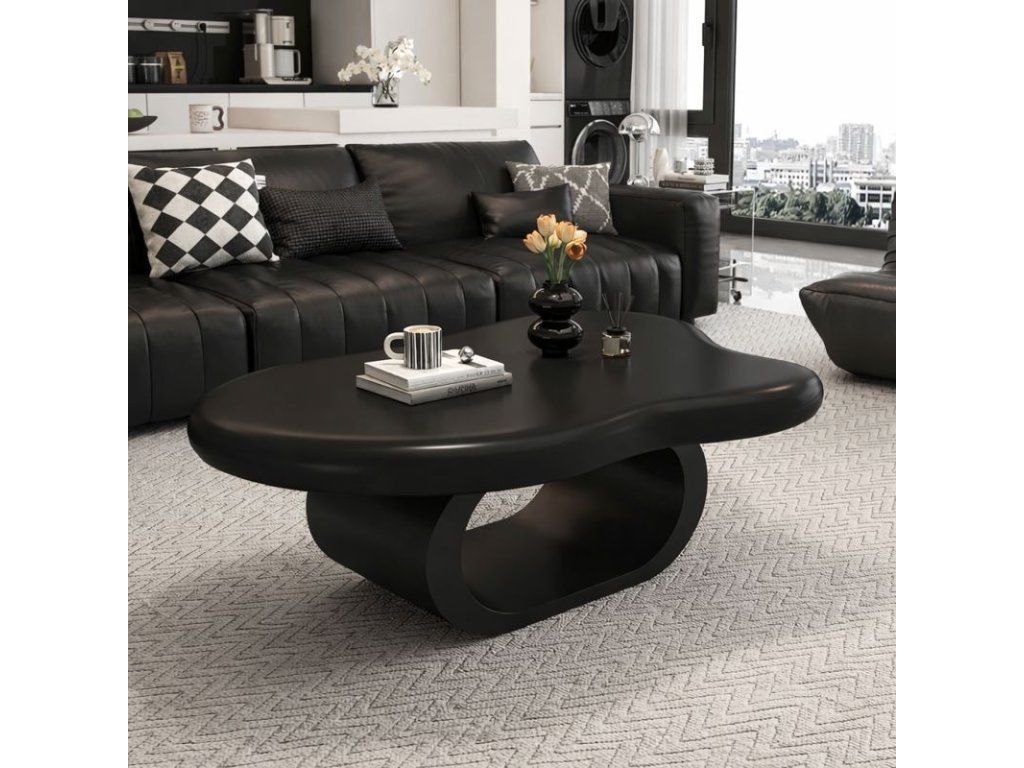 Die Maße von 120 × 79 cm bieten eine komfortable Ablagefläche für den Wohnbereich, während die Höhe von 45 cm ideal auf gängige Sofas abgestimmt ist. Die organisch geformte Tischplatte mit abgerundeten Kanten wirkt modern und fügt sich zugleich harmonisch in zeitgemäße Wohnkonzepte ein.