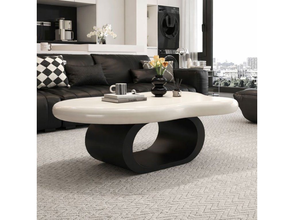 Die Maße von 120 × 79 cm bieten eine komfortable Ablagefläche für den Wohnbereich, während die Höhe von 45 cm ideal auf gängige Sofas abgestimmt ist. Die organisch geformte Tischplatte mit abgerundeten Kanten wirkt modern und fügt sich zugleich harmonisch in zeitgemäße Wohnkonzepte ein.