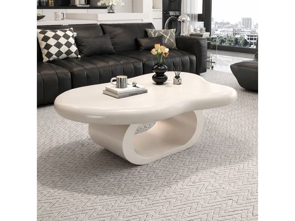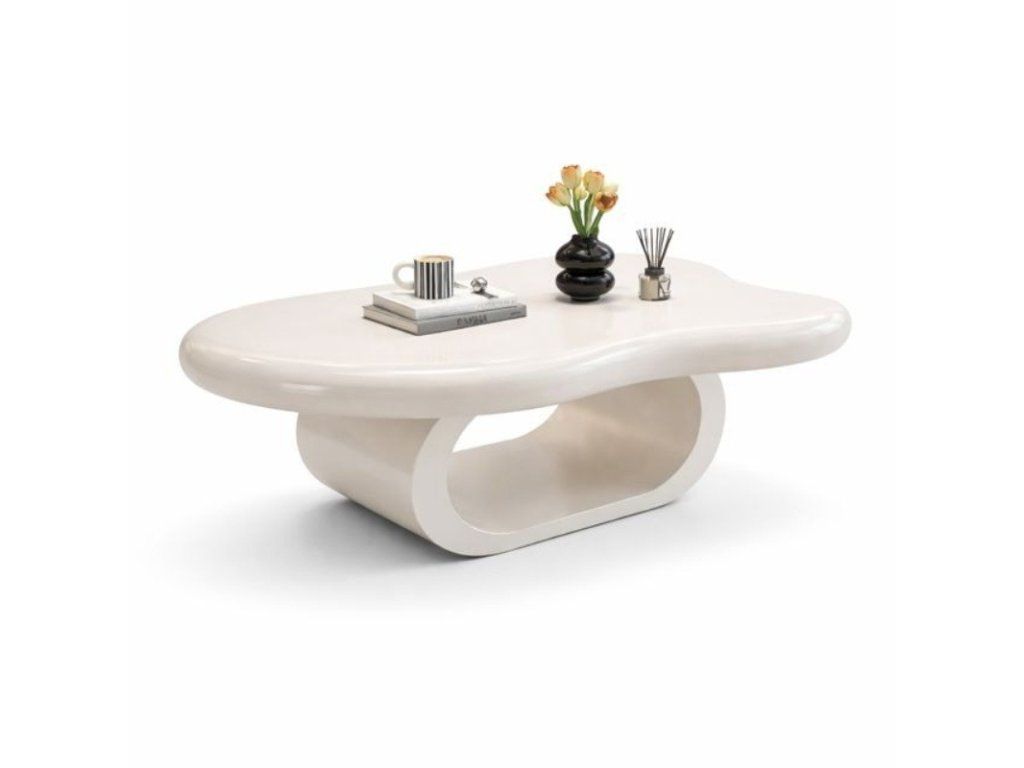Die Maße von 120 × 79 cm bieten eine komfortable Ablagefläche für den Wohnbereich, während die Höhe von 45 cm ideal auf gängige Sofas abgestimmt ist. Die organisch geformte Tischplatte mit abgerundeten Kanten wirkt modern und fügt sich zugleich harmonisch in zeitgemäße Wohnkonzepte ein.