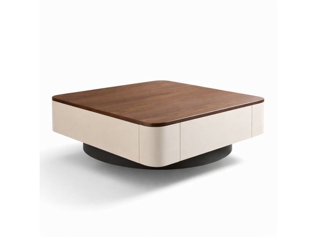 Der Design-Couchtisch mit den Maßen 80 × 80 cm wurde speziell für die Platzierung vor dem Sofa im Wohnzimmer konzipiert. Die elegante Kombination aus Holzdekor und dunklem Gestell schafft einen markanten und zugleich zeitlosen Look, der sich mühelos in moderne sowie minimalistische Einrichtungsstile integrieren lässt.