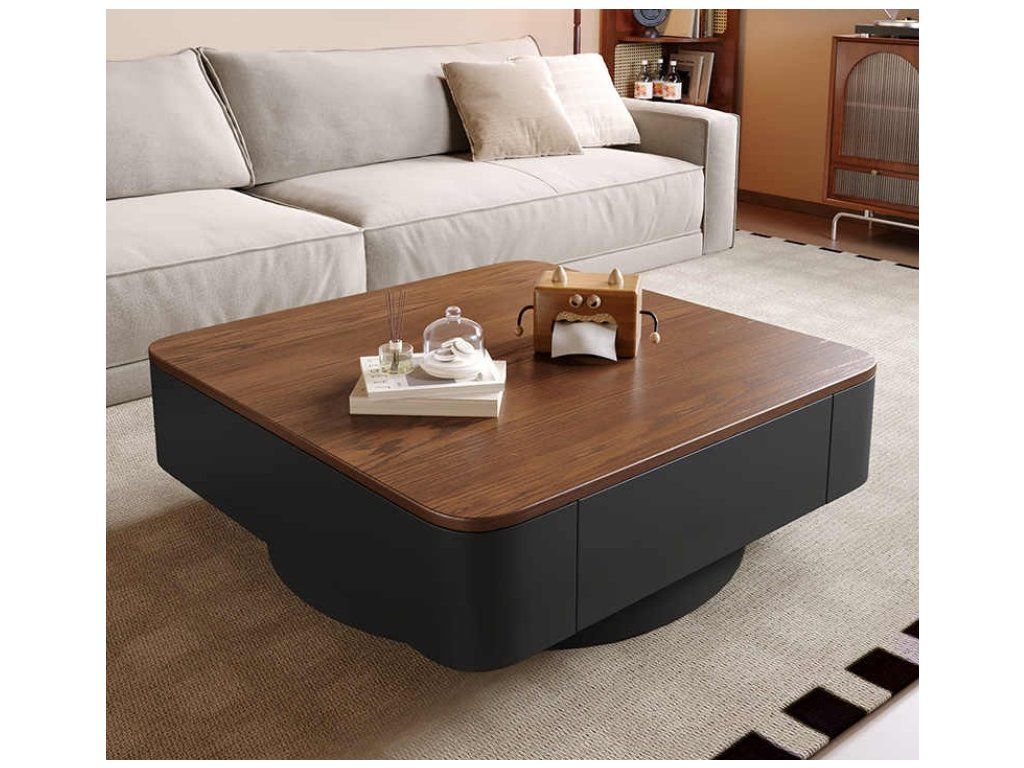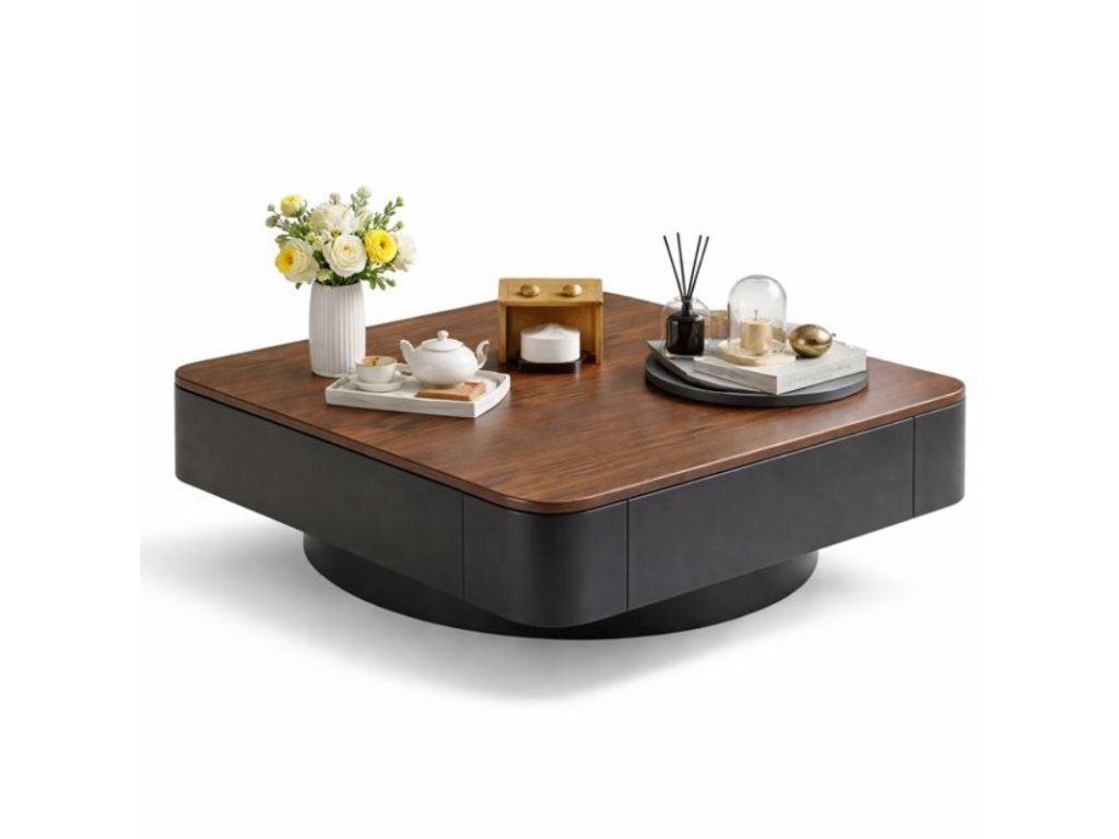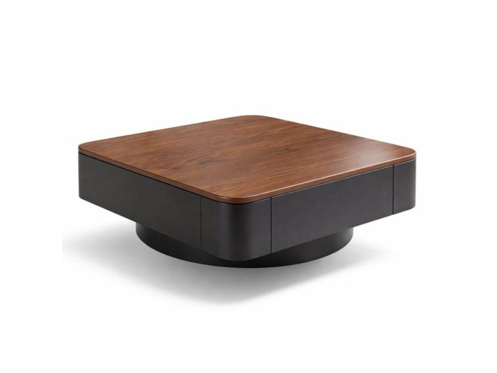Der Design-Couchtisch mit den Maßen 80 × 80 cm wurde speziell für die Platzierung vor dem Sofa im Wohnzimmer konzipiert. Die elegante Kombination aus Holzdekor und dunklem Gestell schafft einen markanten und zugleich zeitlosen Look, der sich mühelos in moderne sowie minimalistische Einrichtungsstile integrieren lässt.
