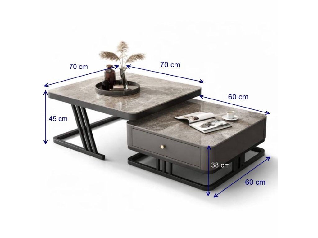 Couchtisch TITAN 70 × 70 / 60 × 60 cm – Grau / Grauer Marmor (2er-Set)