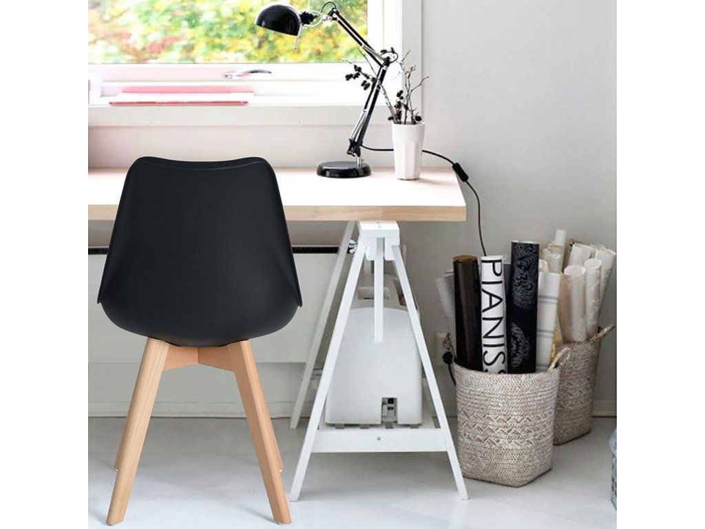 Die Sitzschale besteht aus Kunststoff und ist mit einer bequem gepolsterten Sitzfläche ausgestattet, die mit pflegeleichtem Kunstleder bezogen ist. Das Sitzgefühl ist weich und komfortabel.