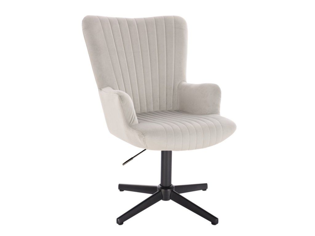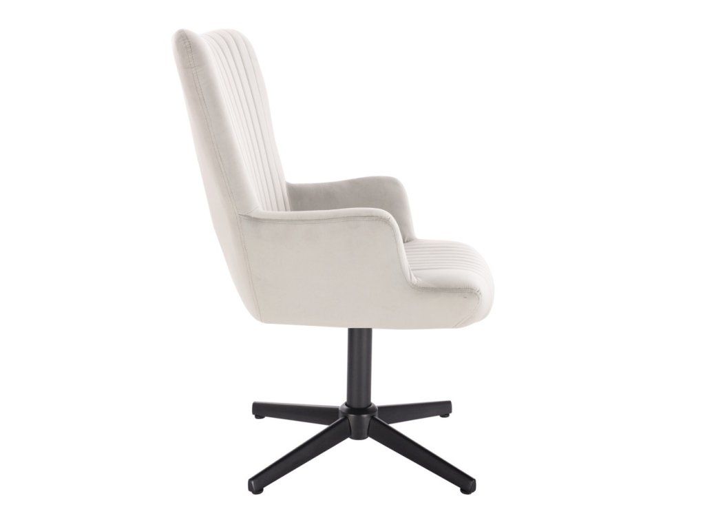 Die stabile Metallkonstruktion mit schwarzem Fußkreuz sorgt für eine sichere und zuverlässige Standfestigkeit. Dank der pneumatischen Höhenverstellung lässt sich der Sessel individuell anpassen. Der Sitz ist zudem um 360° drehbar und ermöglicht eine flexible Nutzung.