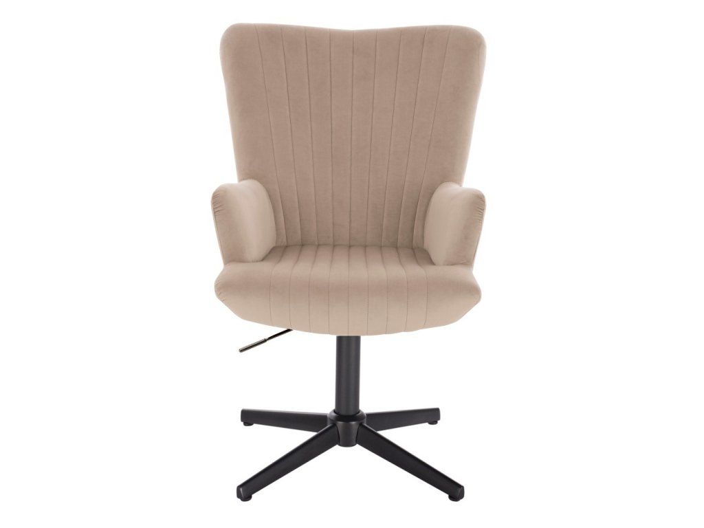 Die stabile Metallkonstruktion mit schwarzem Fußkreuz sorgt für eine sichere und zuverlässige Standfestigkeit. Dank der pneumatischen Höhenverstellung lässt sich der Sessel individuell anpassen. Der Sitz ist zudem um 360° drehbar und ermöglicht eine flexible Nutzung.