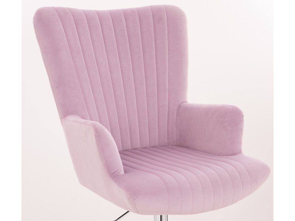 Für außergewöhnlichen Komfort sorgen die hohe Rückenlehne und die gepolsterten Armlehnen. Der Sitz ist mit weichem Velours (Wildlederoptik) bezogen und innen vertikal gesteppt, wodurch der Sessel eine edle und luxuriöse Ausstrahlung erhält.