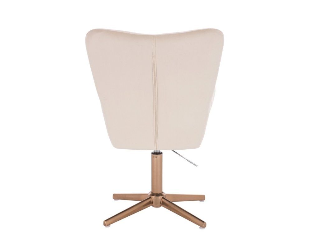 Die stabile Metallkonstruktion mit goldenem Fußkreuz sorgt für sicheren Stand und zuverlässige Stabilität. Dank der stufenlosen Höhenverstellung über eine Gasdruckfeder lässt sich die Sitzhöhe individuell anpassen. Der 360° drehbare Sitz bietet zusätzliche Flexibilität im Alltag.