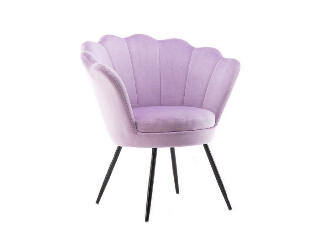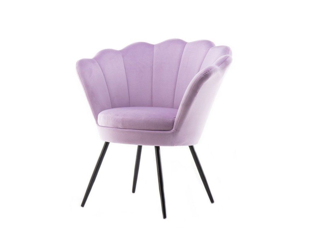 Sessel FREY aus Velours mit schwarzen Beinen – Lavendel