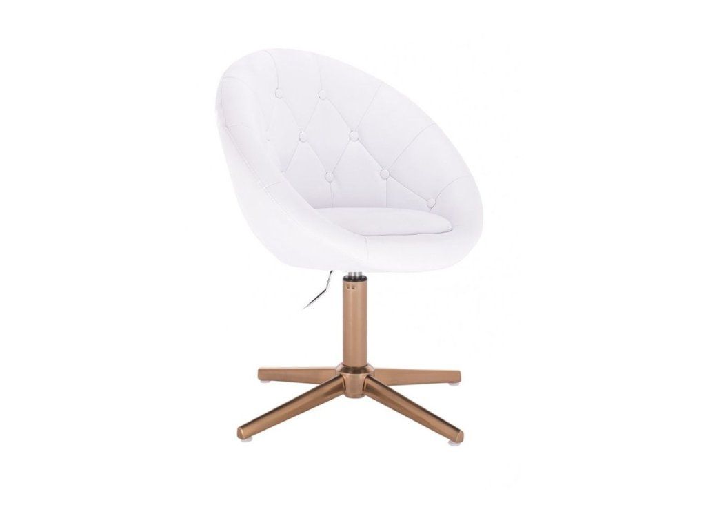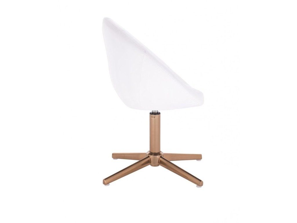 Die stabile Metallkonstruktion mit goldenem Fußkreuz ist höhenverstellbar und sorgt für sicheren Stand sowie hohe Stabilität. Das goldene Gestell verleiht dem Sessel zudem eine elegante und luxuriöse Ausstrahlung. Die Sitzhöhe wird stufenlos über eine pneumatische Gasdruckfeder eingestellt, während der Sitz um 360° drehbar ist und zusätzlichen Komfort bietet.