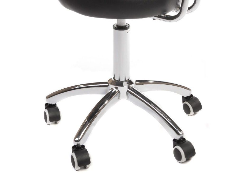 Die Sitzfläche ist mit weichem Schaumstoff gepolstert und mit hochwertigem Kunstleder bezogen. Das Material ist pflegeleicht und lässt sich einfach reinigen – ideal für den professionellen Einsatz in Kosmetikstudios, Praxen oder Wellnessbereichen.