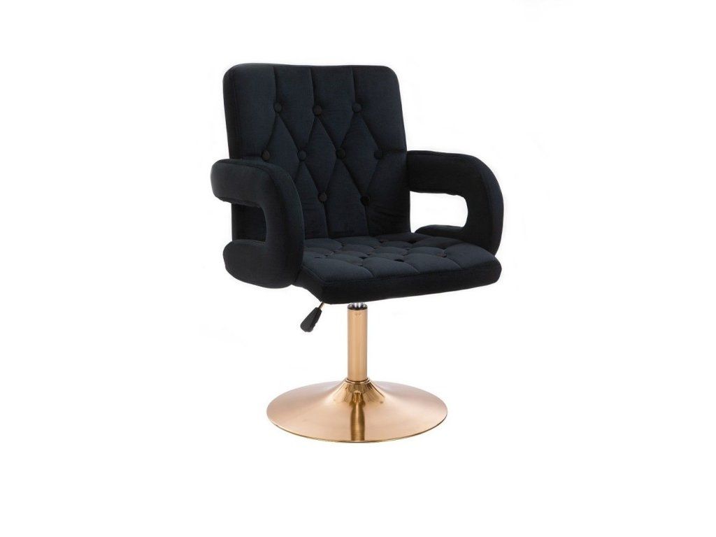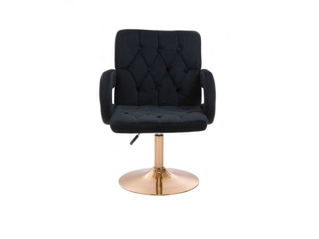 Stuhl BOSTON VELOURS mit goldenem Tellerfuß – Schwarz