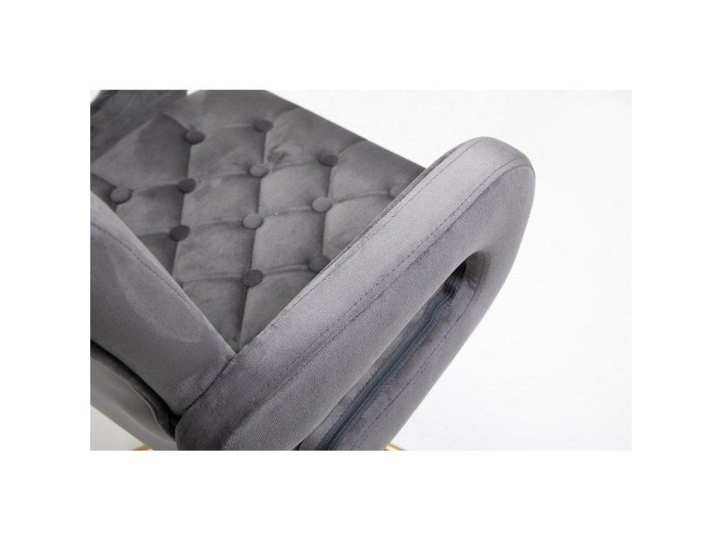 Das luxuriöse Design mit tiefem, komfortablem Sitz ist mit hochwertigem, angenehm weichem und gestepptem Velours bezogen. Stoffbezogene Zierknöpfe unterstreichen die stilvolle Optik und verleihen dem Stuhl eine edle und elegante Ausstrahlung.