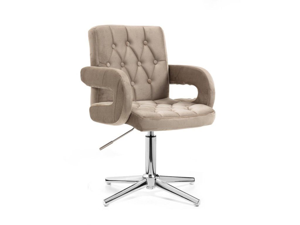 Das luxuriöse Design mit tiefem, komfortablem Sitz ist mit hochwertigem, angenehm weichem und gestepptem Velours bezogen. Stoffbezogene Zierknöpfe unterstreichen die stilvolle Optik und verleihen dem Stuhl eine edle und elegante Ausstrahlung.