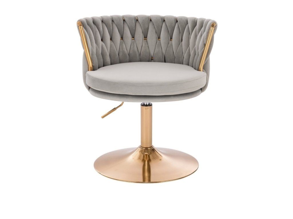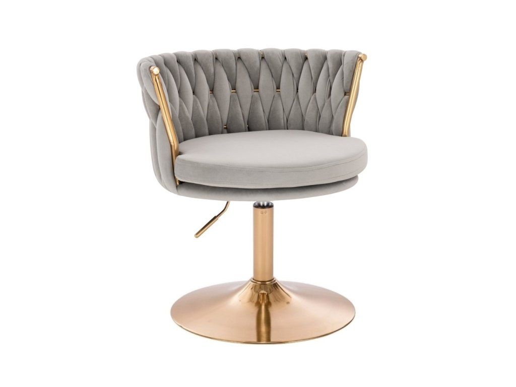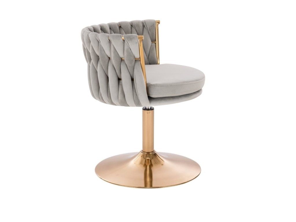 Stuhl LYON VELOURS mit goldenem Tellerfuß – Hellgrau