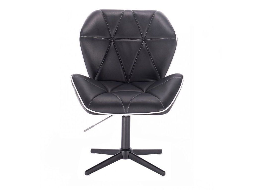 Die tiefe und komfortable Sitzfläche ist mit hochwertigem, pflegeleichtem Kunstleder bezogen, das sich leicht reinigen lässt und ideal für den täglichen Gebrauch ist. Die dekorative geometrische Steppung sowie die kontrastierende Paspelierung verleihen dem Stuhl eine besonders elegante und moderne Optik.