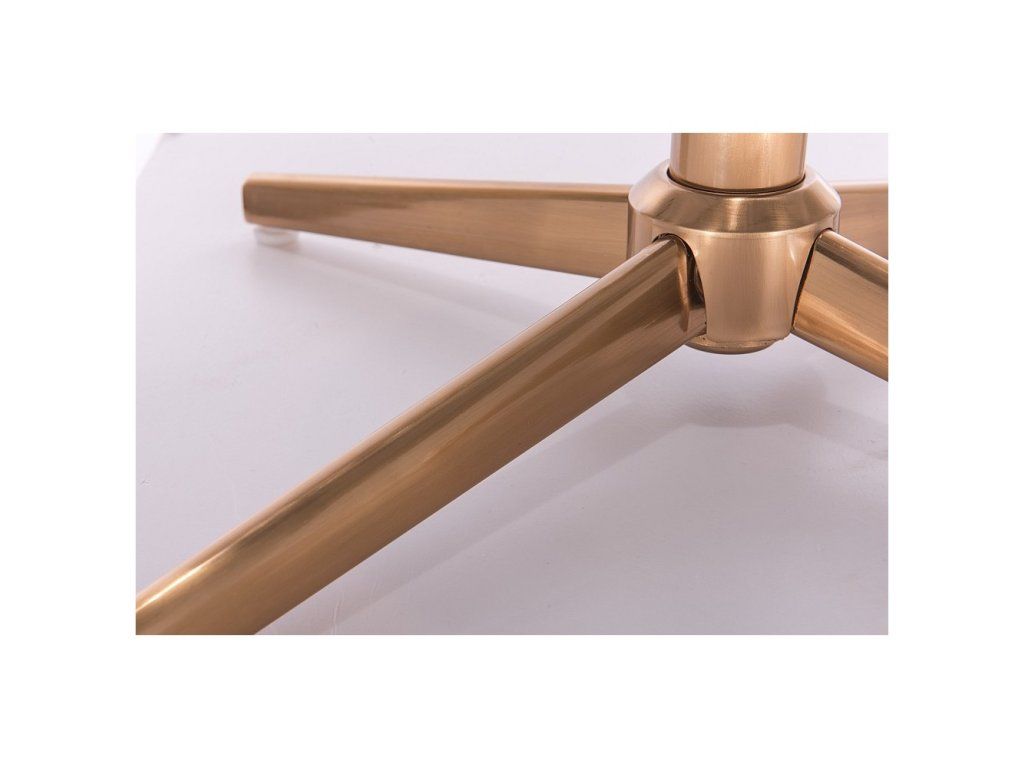 Die stabile Stahlkonstruktion mit goldenem Fußkreuz sorgt für sicheren Stand und zuverlässige Stabilität. Dank der stufenlosen Höhenverstellung über einen Pneumatikzylinder lässt sich die Sitzhöhe individuell anpassen. Der 360° drehbare Sitz bietet zusätzliche Bewegungsfreiheit.