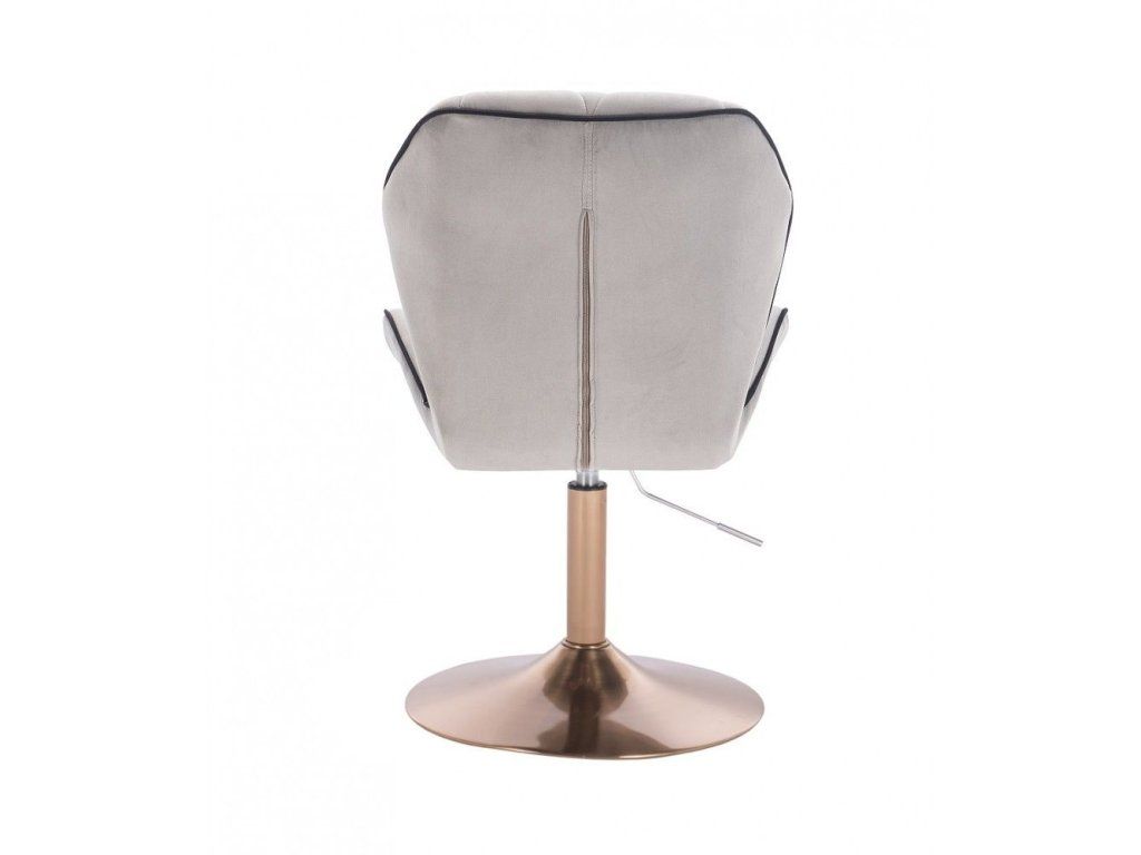 Die stabile Stahlkonstruktion mit goldenem Tellerfuß sorgt für sicheren Stand und zuverlässige Stabilität. Dank der stufenlosen Höhenverstellung über einen Pneumatikzylinder lässt sich die Sitzhöhe individuell anpassen. Der 360° drehbare Sitz bietet zusätzliche Bewegungsfreiheit.