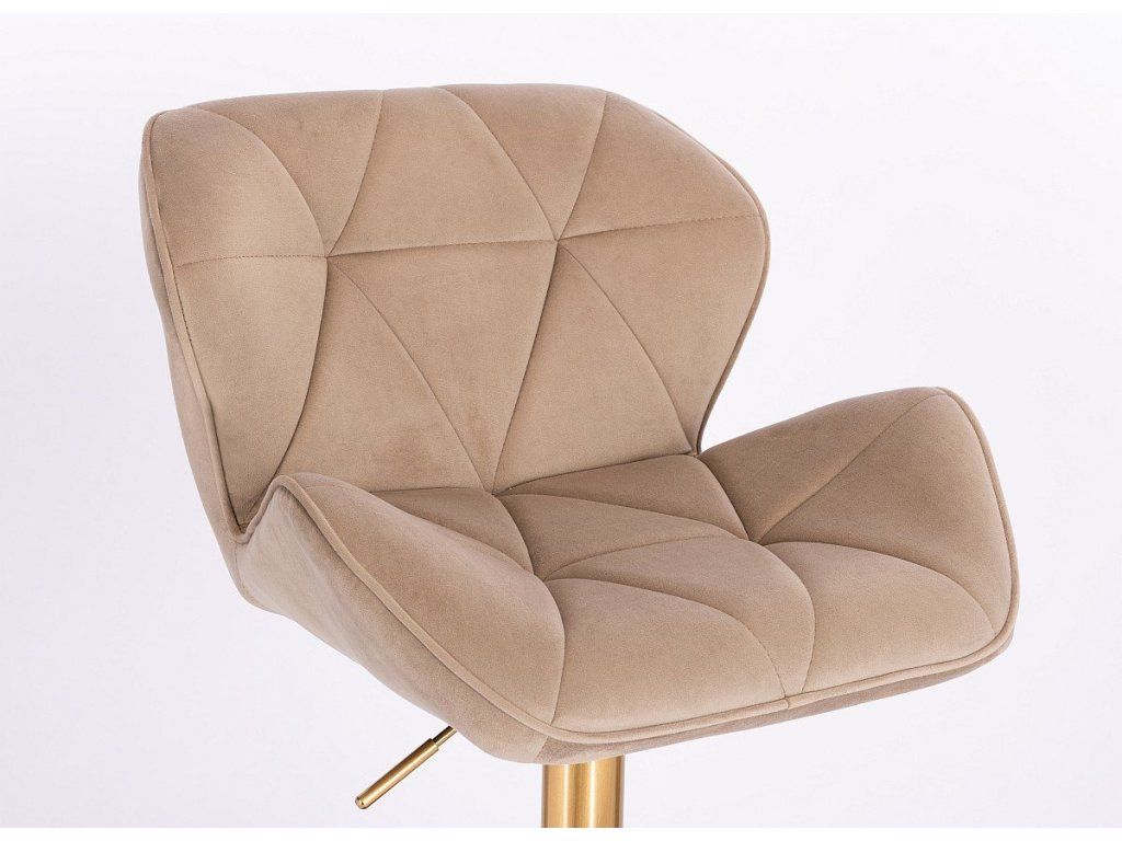Sitzfläche und Rückenlehne sind komfortabel gepolstert und mit hochwertigem, gestepptem Velours bezogen. Die dekorative Steppung unterstreicht das stilvolle Erscheinungsbild und verleiht dem Stuhl eine exklusive Note.