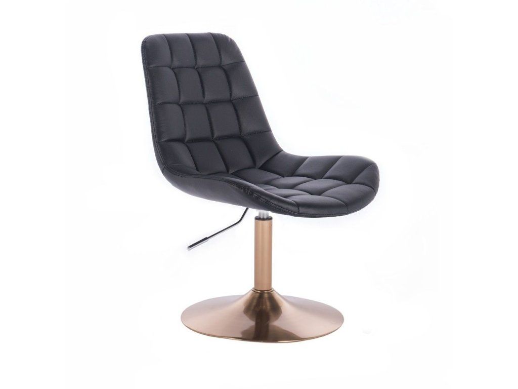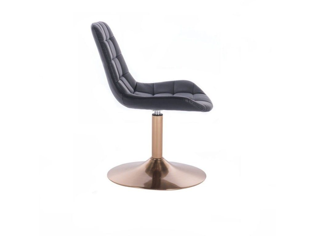Die stabile Metallkonstruktion mit goldenem Tellerfuß ist höhenverstellbar und sorgt für eine sichere und stabile Nutzung. Der Sitz ist zudem um 360° drehbar und ermöglicht komfortables Arbeiten in verschiedenen Einsatzbereichen.