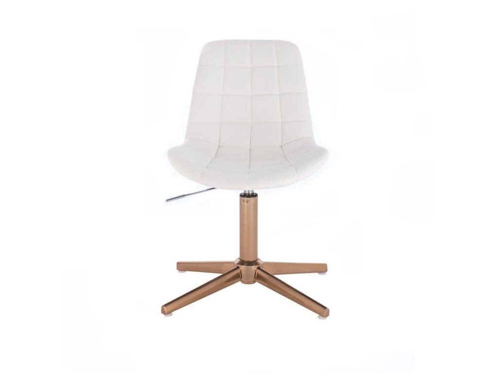 Die stabile Metallkonstruktion mit goldenem Fußkreuz ist höhenverstellbar und sorgt für eine sichere und stabile Nutzung. Der Sitz ist zudem um 360° drehbar und ermöglicht komfortables Arbeiten in verschiedenen Einsatzbereichen.