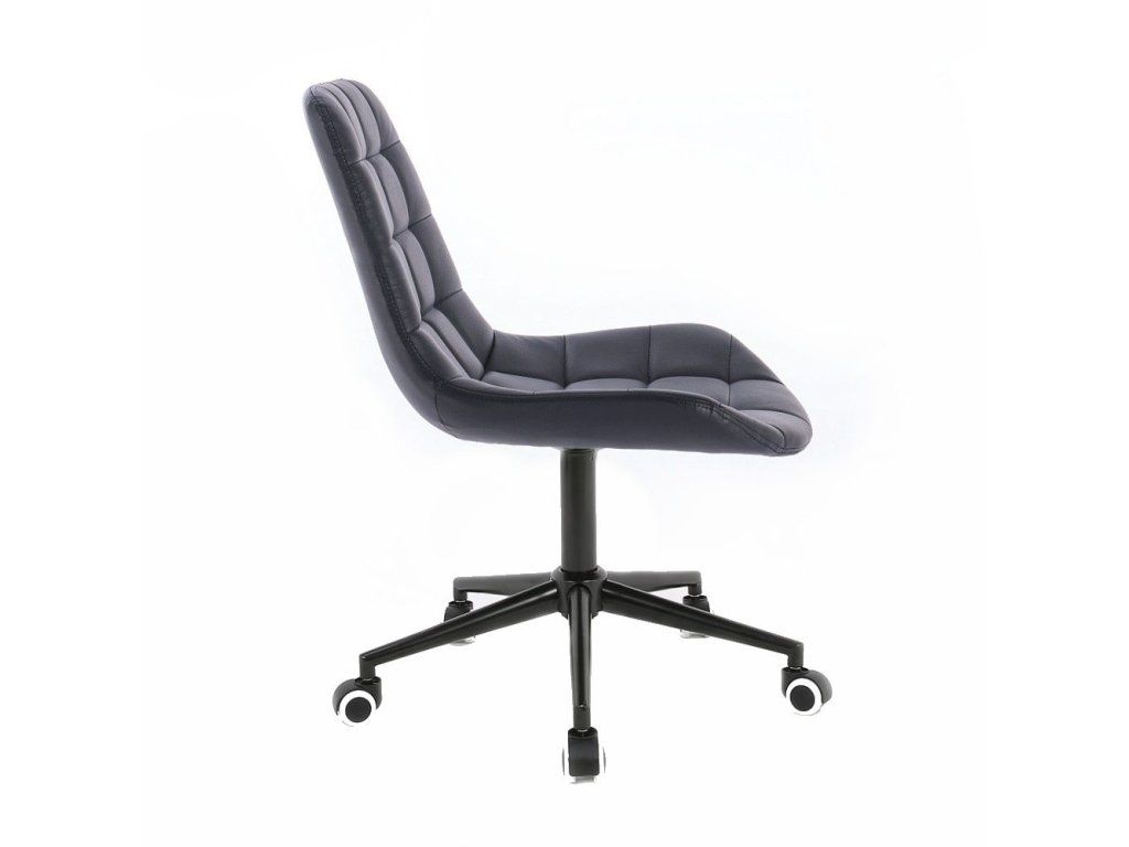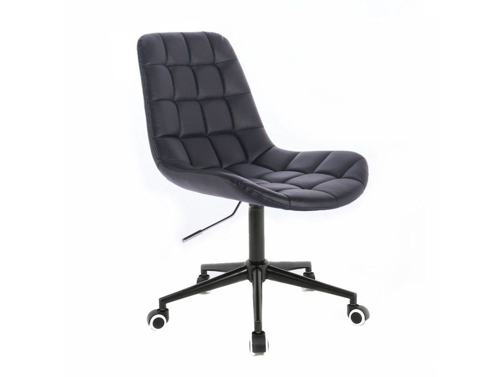Die stabile Metallkonstruktion mit schwarzem Gestell ist höhenverstellbar. Dank der Rollen lässt sich der Stuhl leicht bewegen und flexibel einsetzen.