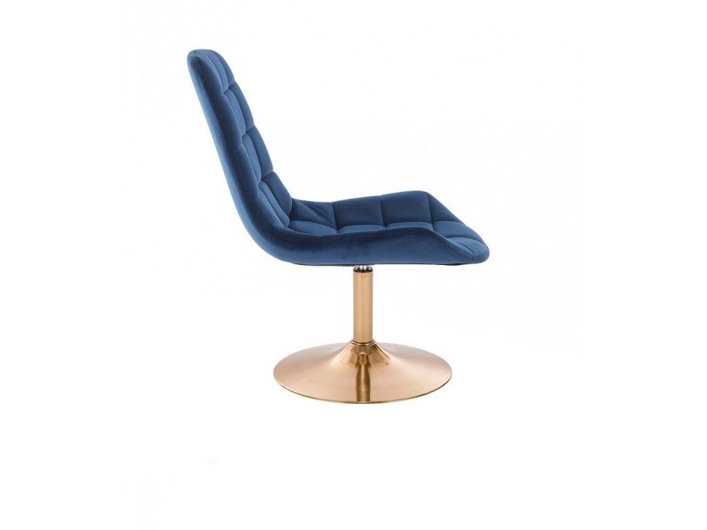 Die stabile, höhenverstellbare Metallkonstruktion mit elegantem goldenem Tellerfuß sorgt für maximale Standfestigkeit und unterstreicht den exklusiven Charakter des Stuhls. Die Sitzhöhe lässt sich stufenlos über eine pneumatische Gasdruckfeder einstellen, während der 360° drehbare Sitz zusätzliche Flexibilität bietet.