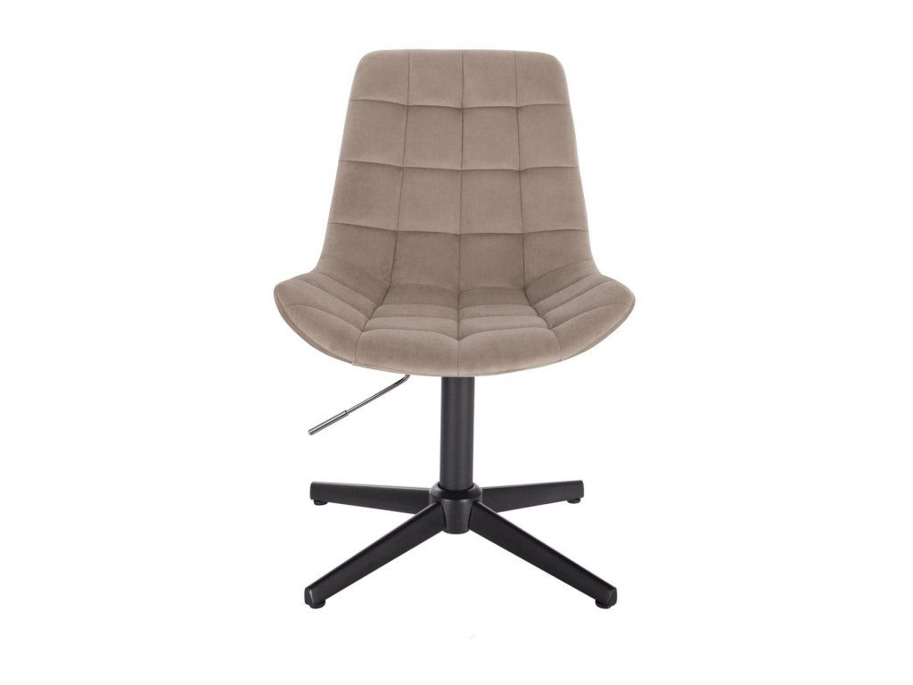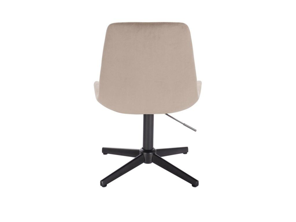 Die stabile, höhenverstellbare Metallkonstruktion mit schwarzem Fußkreuz gewährleistet sicheren Stand und optimale Stabilität. Die Sitzhöhe lässt sich stufenlos über eine pneumatische Gasdruckfeder einstellen, während der 360° drehbare Sitz zusätzlichen Komfort bietet.