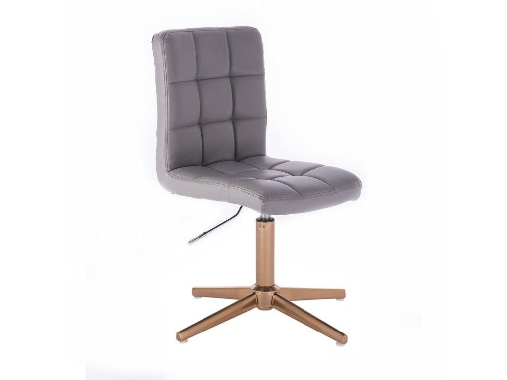 Die stabile Stahlkonstruktion mit goldenem Fußkreuz ist höhenverstellbar und sorgt für maximale Standfestigkeit und Stabilität. Das goldene Gestell verleiht dem Stuhl zusätzlich eine elegante und luxuriöse Ausstrahlung. Der Sitz ist zudem um 360° drehbar und ermöglicht komfortables Arbeiten in verschiedenen Einsatzbereichen.