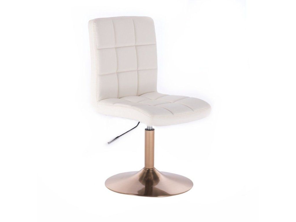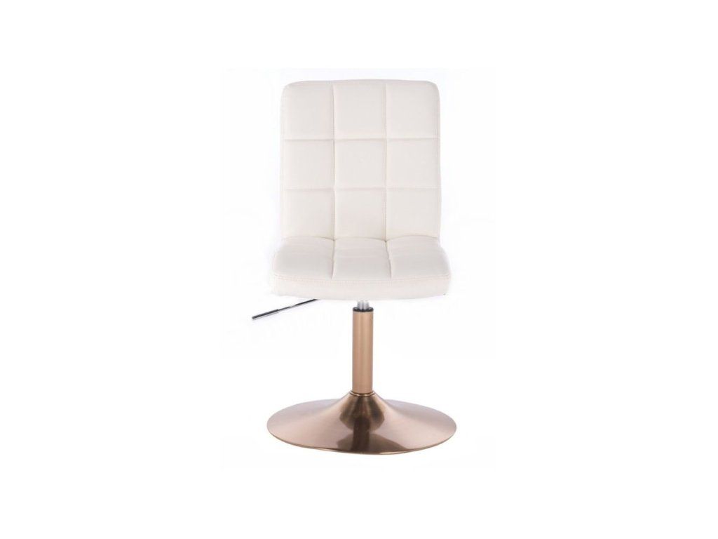 Die stabile Stahlkonstruktion mit goldenem Tellerfuß ist höhenverstellbar und sorgt für hohe Standfestigkeit und Sicherheit. Der elegante, runde Tellerfuß verleiht dem Stuhl zusätzlich eine moderne und luxuriöse Ausstrahlung. Der Sitz ist zudem um 360° drehbar und ermöglicht komfortables Arbeiten in verschiedenen Einsatzbereichen.