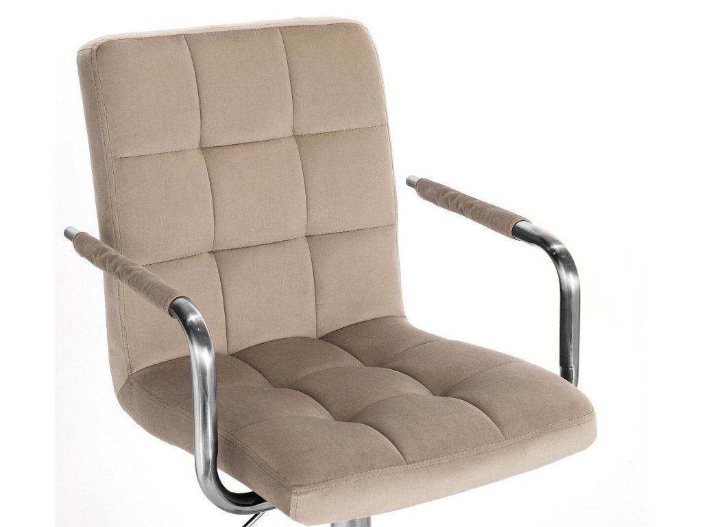 Sitzfläche und Rückenlehne sind komfortabel gepolstert und mit hochwertigem, gestepptem Velours bezogen. Die dekorative Steppung verleiht dem Stuhl eine edle Optik, während die gepolsterten Armlehnen zusätzlichen Komfort bieten.