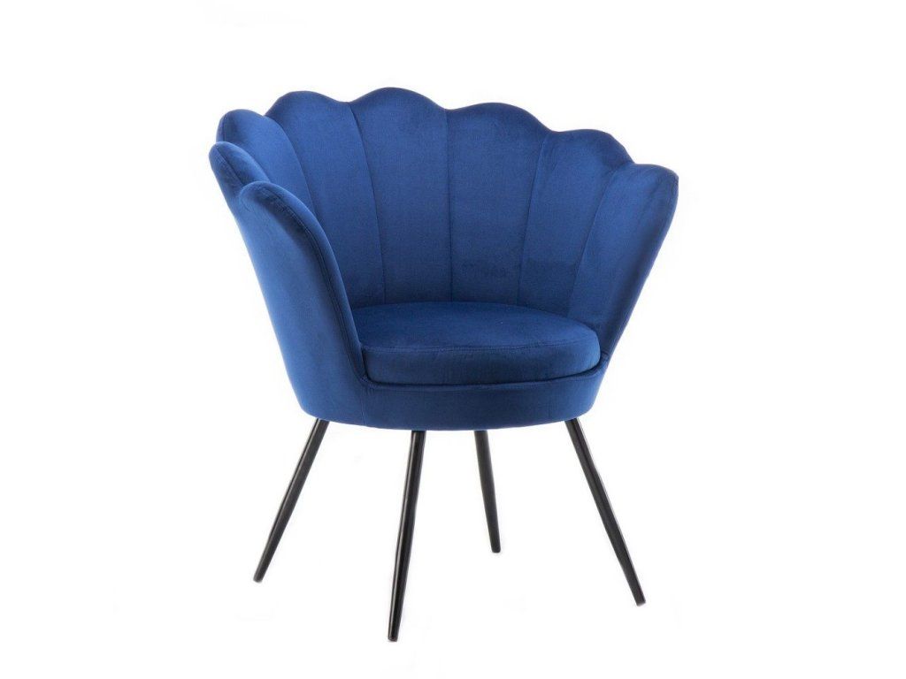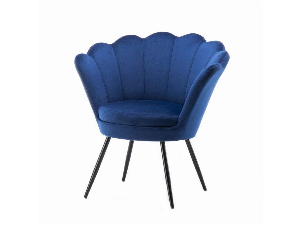 Velours-Sessel FREY mit schwarzen Metallbeinen in Blau